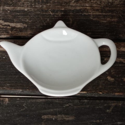 Nice teapot shaped plate in white for your tea leaves, tea bags or other items you wish.