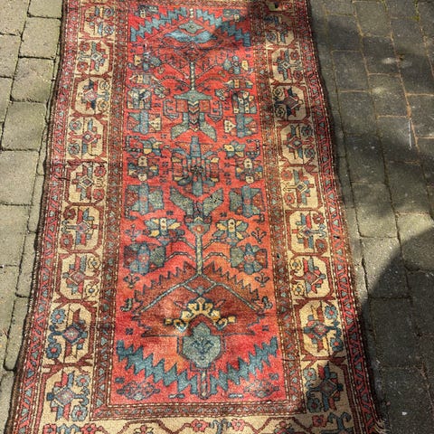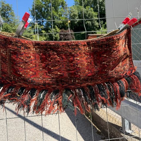 Fladvævet turkmensk taske. Ægte tæppe, håndvævet. Materiale: uld/bomuld.
