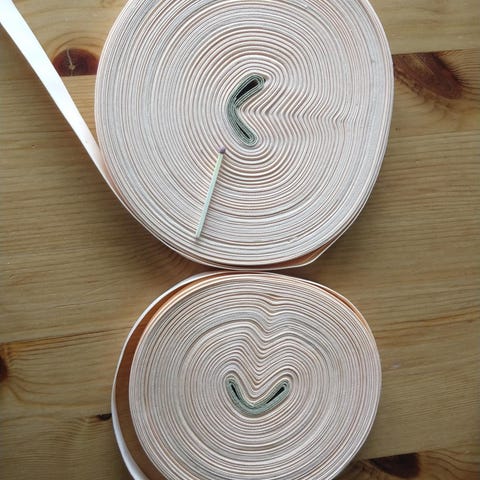 2 stk. kantebånd i sart gul m/blomstermotiv og tungekant.