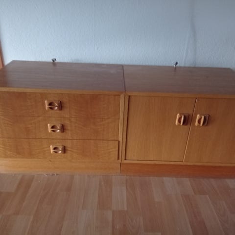 Jeg sælger kommoder, da jeg har købt en ny hvid garanti nu. Kommoderne er lavet af massivt egetræ. De er godt vedligeholdte og ser ud som nye, hvilket kan ses på billederne. Glaskommoden har en højde på 1,90 m og en bredde på 0,92 m. TV-kommoden har en længde på 1,60 m og en højde på 0,55 m, mens skuffekommoden har en højde på 0,90 m og en bredde på 0,53 m. Hele sættet er kun tilgængeligt for 3.500 kr. Nypris er 15.500 kr.