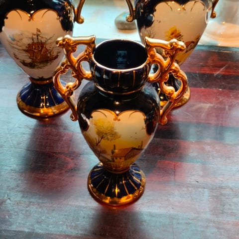 FLOT VASE MED 2 GAMLE KRIGSSKIBE.