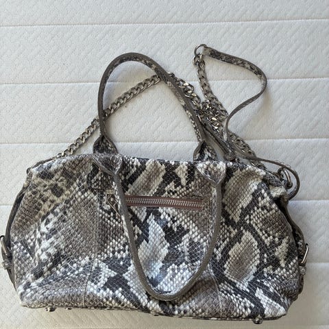 Lux de Ville Black Widow taske i blå kunstlæder til kvinder. Tasken har et quiltet mønster og inkluderer en pung i matchende materiale og farve. Designet er detaljeret med et lille sølvfarvet kranie på pungen. Tasken er egnet til daglig brug og kan rumme nødvendigheder på en stilfuld måde.