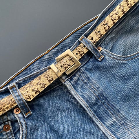 Bælte, Andet, str. 82 cm langt, Brun, Slangeskind, Næsten som ny, Vintage bælte i brunt slangeskind. 82 cm langt og 1,8 vm bredt.
