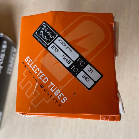 Alle helt nye 12BH7, 12AX7, 12AU7, og NOS 2 stk 6C4, 2 stk 6AU6 & 1 stk 6X4.