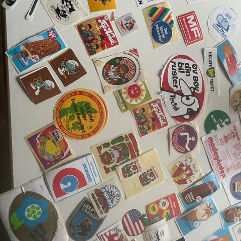 1 lot klistermærker, bl.a.. Motor Bladet, Familien i biografen, Fårup sommerland….