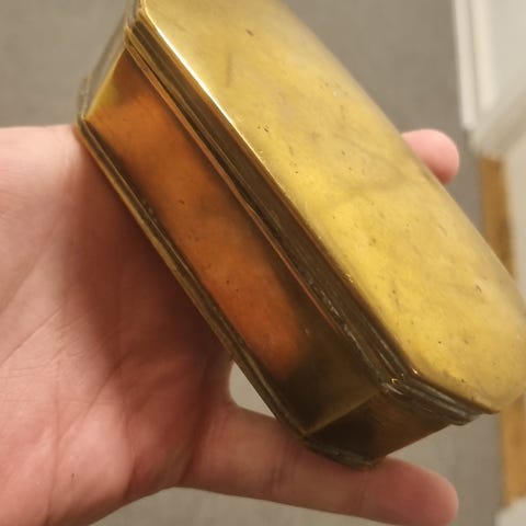 - Fin lille beholder med doseringsske til kalk. Metal ukendt…måske sølv.