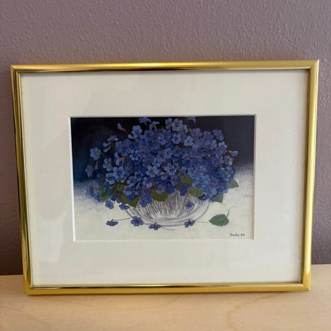 Klassisk Gloria Eriksen dekorativt botanisk blomster tryk (Hvid Agapanthus) i original ramme (har brugsspor)