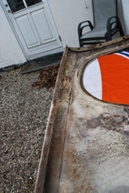 Triumph TR4 venstre bagskærm uden gennemtæring.