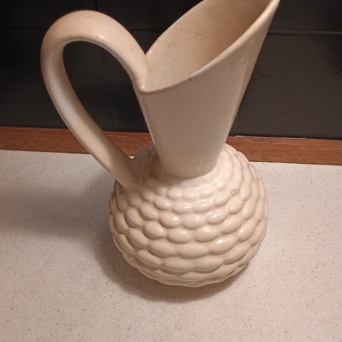 Høj emalje kande med patina sælges.