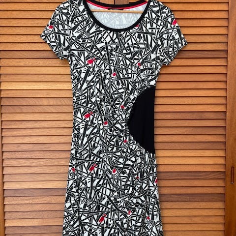 Festkjole, Isaksen, str. M, Sort og hvid, Viskose, polyester og lycra, Næsten som ny, Fin kjole brugt få gange.