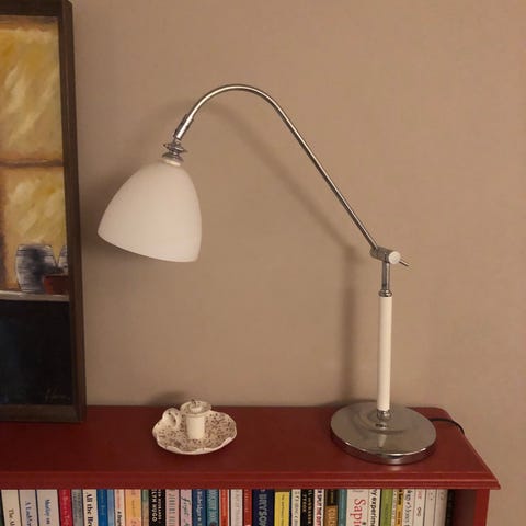 Flot Herstal halogen bordlampe med lysdæmper og bevægelig skærm.
