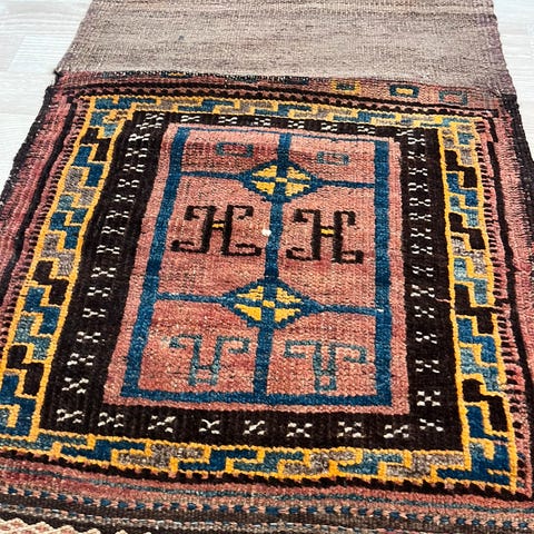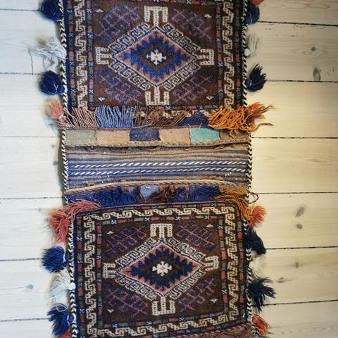 Turkmensk håndknyttet sadeltaske fra Yomud-stammen. Orientalsk ægte tæppe Lille plet i bunden af den ene halvdel.