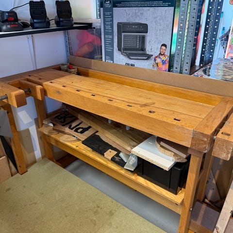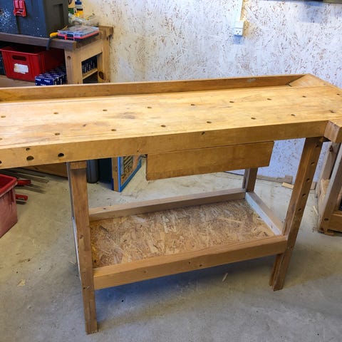 Arbejdsbænken er ubrugt og i den originale emballage men har lidt småskrammer men har nu ikke været brugt