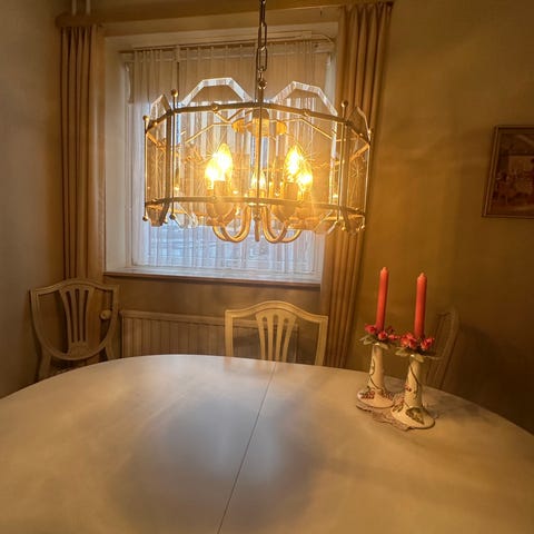 Lilla lysekrone, fremstår som ny. Skal blot tørres af for støv. Har hængt på et lillepige værelse.
