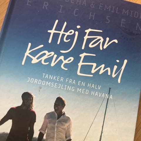 Hej Far - Kære Emil - Tanker fra en halv jordomsejling med Havanna. Af Mikkel Beha Erichsen og Emil Midé Erichsen. Stor Hardback-udgave. Forlaget Havanna, 2015. Fejlfrit eksemplar