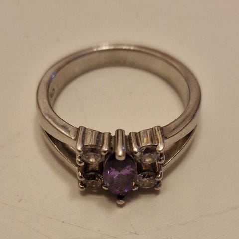 SølvringS925 med hjerteslepet sten str 18,5mm. 300kr