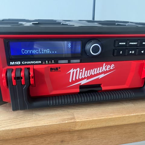 Virker fint kan tænkes med strøm, m18 Milwsukee Baterie , 12 volt