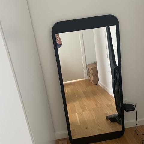 Har 4 OYOY Renga spejle - 2 med antracitgrå ramme og 2 med rosa ramme. Aldrig været brugt, kun åbnet for at tage billeder.