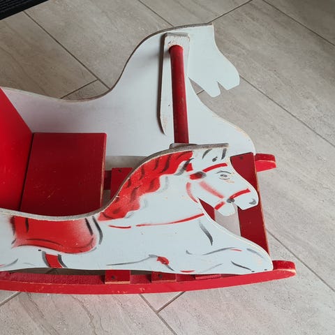 Sød retro gyngehest i god stand. En enkel synlig ridse på sædet.