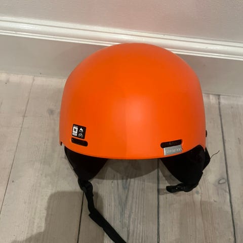 Størrelse L (59-62 cm) og farven er orange/sort.