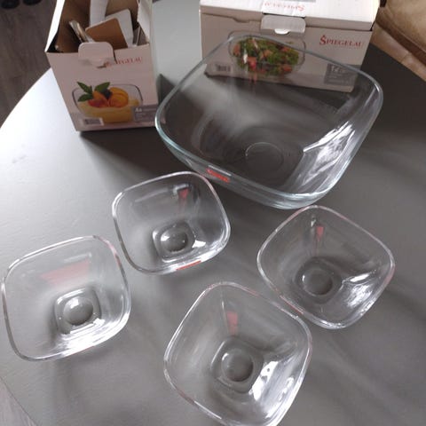 Serveringsbowle, glas med 6 glaskopper