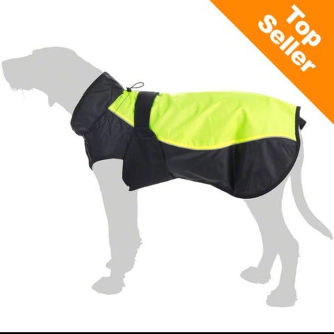 Regndækken eller refleksvest til hund 35 cm over ryg, 40 cm om hals.