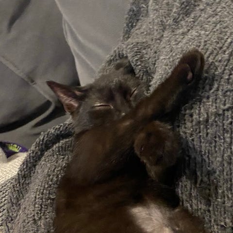 Mimi er glad for at sove i sengen om natten sammen med sit menneske og lægger sig på ens mave, når hun trænger til nus og kæl i sengen. Dog sover hun også nogle gange i et rum for sig selv. Hun elsker at blive kælet under hagen og på kinderne!