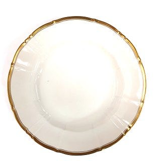 Bing og Grøndahl - Offenbach halvmåneformet assiet (41), som er ideel at anvende som salat- eller brød tallerken, når du overfor svigerfamilien eller dine venner skal vise, at de er kommet til et hjem med... et fornemt spisestel! 2. sort (måske, fordi guldet er blevet lagt for tykt på?!)
