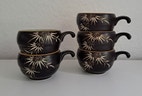 Udvendigt er kopperne sorte med håndgraveret mønster af bambus blade.