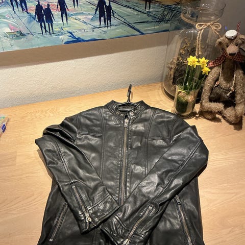 Læderjakke, str. L, Samsøe Samsøe, Grå, Læder, God men brugt, Lækker læderjakke som jeg bare ikke for brugt. Derfor bedre en anden for glæde af den.