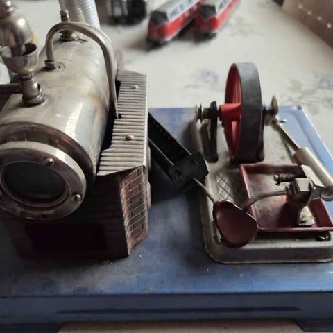 Wilesco dampmaskine, blandemaskine og saks medfølger
