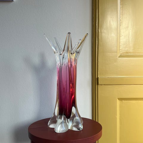 Smuk grøn murano glas vase: lille bitte ridse i: H 26 cm