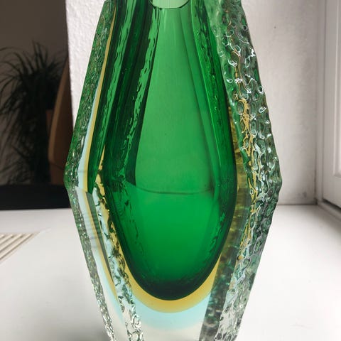 Smuk grøn murano glas vase, designet af Flavio Poli. lille bitte ridse i: H 26 cm