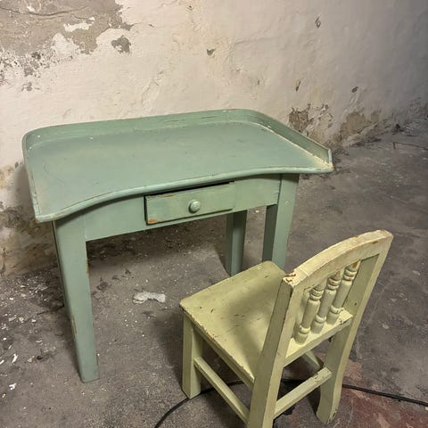 Bord, Børnebord bord stol alfabetet grøn blå lyseblå