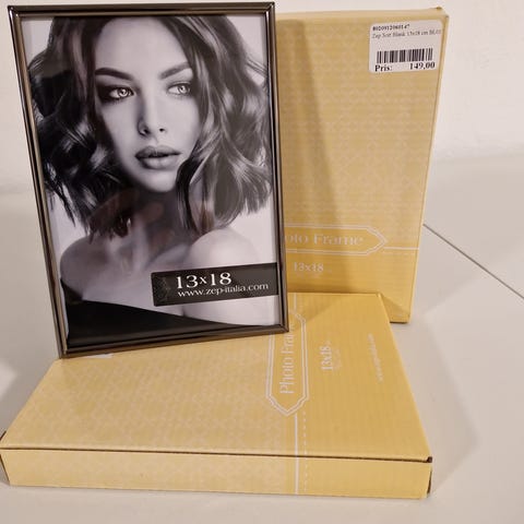 Til foto der måler 10 x 15 cm, rammen måler cirka 24 x 19 cm.