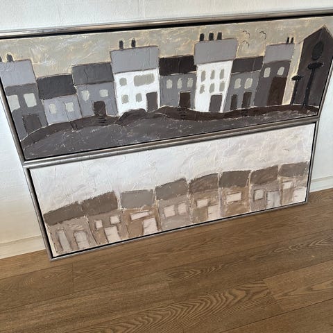 Abstrakt maleri med huse