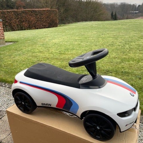 Sælger denne fine og originale BMW racer til børn fra 1-3 år. Den er super fin og i virkelig lækker kvalitet. Den har en lille skramme som er vist på billedet, ellers er den super flot.