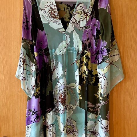 Flot silkekjole med mønstret foer.