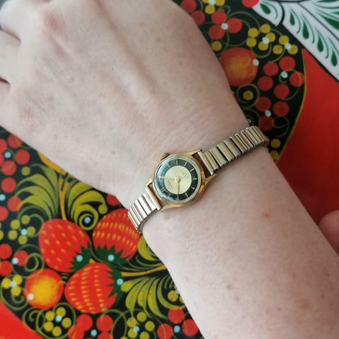 Lille, fint og meget velholdt smykkeur med bøjle i forgyldt 925 sølv fra schweiziske Golana. Meget lidt brugt. Uret er med optræk.