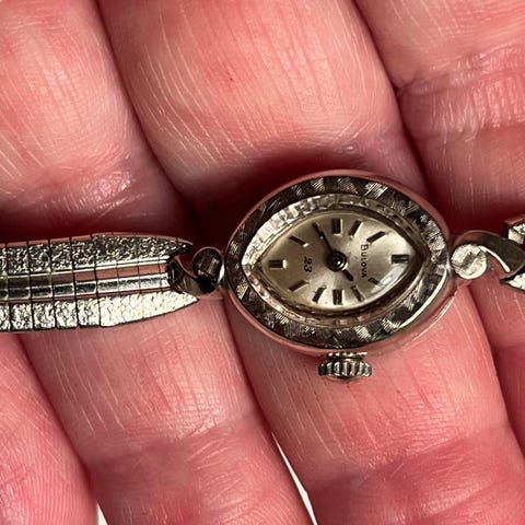 Mål: Bøjle + ur: Ø: ca. 17 cm; Ur: L: 23 mm, B: 18 mm (B incl. krone: 20 mm).