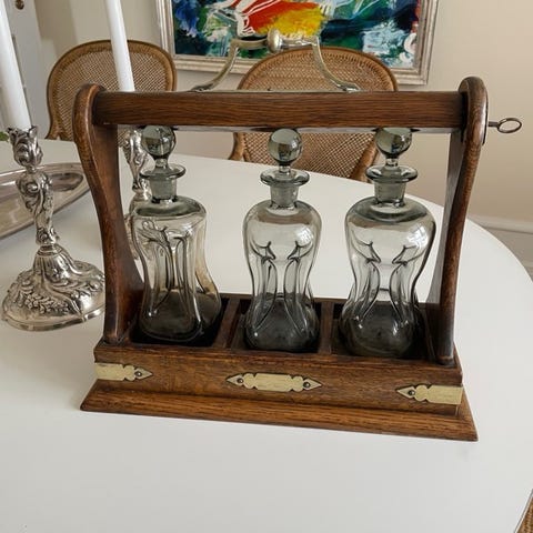 Gammel smuk Tantalus, m/ 3 karafler. Der medfølger nøgler.