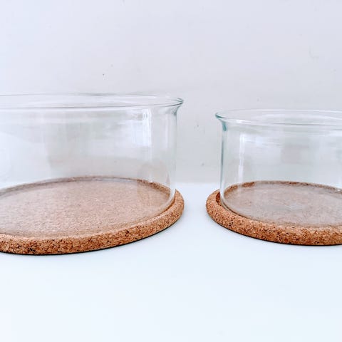 Jeg har de små Bodum skåle også med hvid stativ (4 stk.) med kork plade (4 stk.) med metalstativ har jeg foruden den med hvis skål også 2 stk. med glas skål. (30 kr stk)