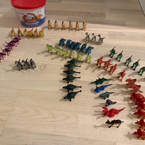 Dinisaurer 20 stk kan hænges på magnettavle/køleskab m.v. ligger i trækasse.