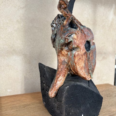 Skulptur, Gerd Baarstrøm, motiv: Grøftevsndspiskedy, Af materialet RAKU