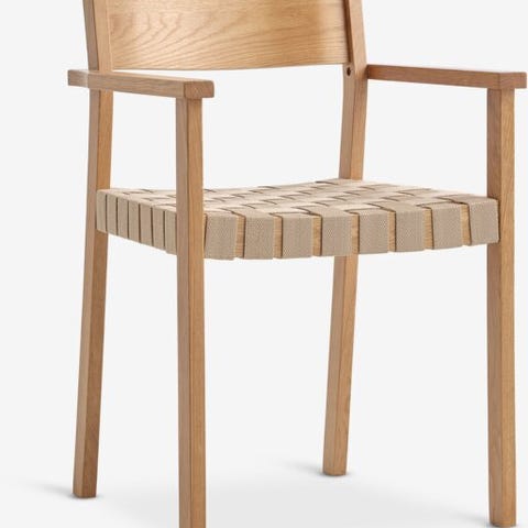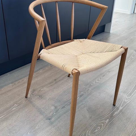 Størrelse: Højde 74 cm, bredde 63 cm, dybde 46 cm, siddehøjde 45 cm, siddebredde 44 cm, siddedybde 43 cm. Sædets bredde i forkant inklusive benene 48 cm.