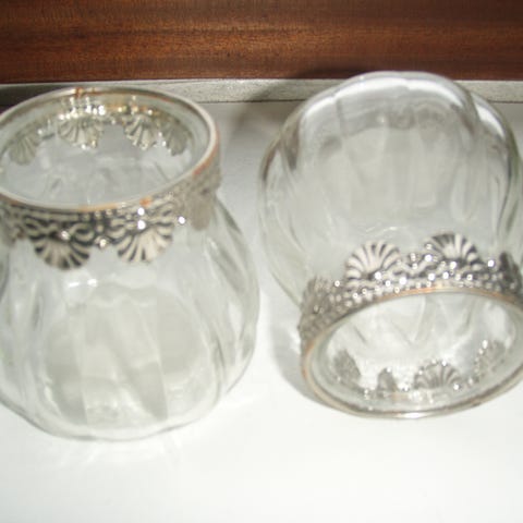Sød lille lysestage til fyrfadslys i "sølv" Den er 4 cm høj og med huller der forestiller måner og palmer.