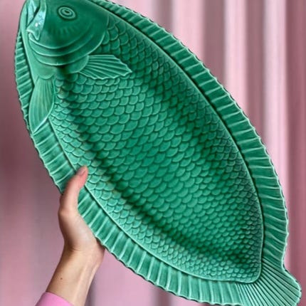Flot og dekorativt fiskefad fra Villeroy og Boch, 52 cm lang, 23.5 bredt.