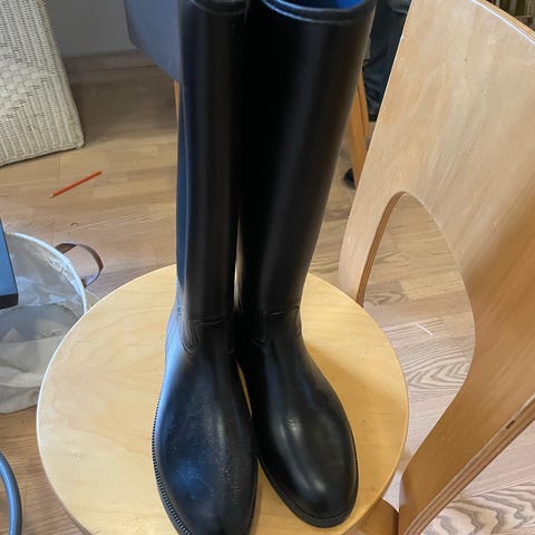 Ridestøvler, Sorte langskaftede ridestøvler, Sorte langskaftede ridestøvler damemodel fra sål til skaft 44 cm. Brugt en enkelt gang, grundet for lange fra sål til skaft, før 2479,