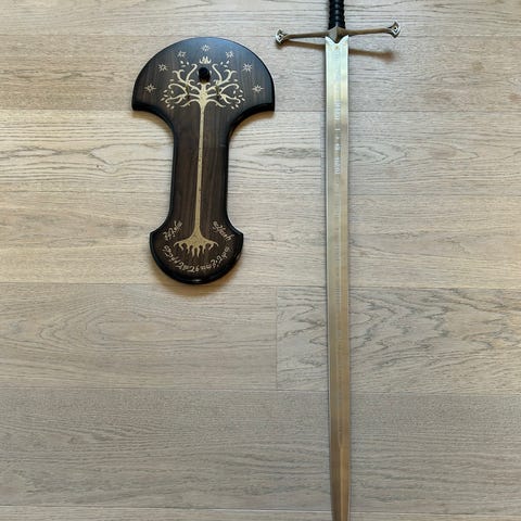 Storslået sæt af de 2 sabler af Legolas the Elf. Legolas' sværd har klinger lavet af 440 stål fint indskrevet med elverskrift, de er forslebet, men ikke skærkant.