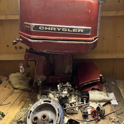 Ben adskilt. gearkasse demonteret til rep. eller reservedele. Passe reservedele med ældre Crysler motorer. Veteran motor, elstart. billedet er kun et modelbillede som viser modellen, det er ikke den aktuelle motor.